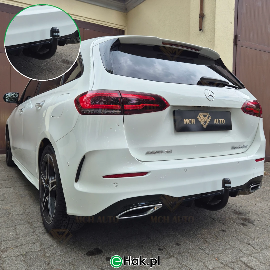 Podnieś funkcjonalność Mercedes B-Class, wybierając kompletny zestaw haka holowniczego wraz z profesjonalnym montażem. Nasze zestawy są wyposażone w nowe, solidne, pionowo wypinane haki marki BRINK , które cechują się wysoką wytrzymałością i estetycznym wyglądem. Dodatkowo, oferujemy dedykowane wiązki elektryczne 13 pinowe, zapewniające pełną zgodność z systemami samochodu, w tym obsługę świateł przyczepy i opcjonalne rozłączanie czujników parkowania podczas jazdy z przyczepą.Nasi specjaliści realizują montaż zgodnie z najwyższymi standardami, dbając o bezpieczeństwo i pełną funkcjonalność instalacji. To idealne rozwiązanie dla osób ceniących komfort, niezawodność oraz bezpieczeństwo podczas holowania przyczep czy przewożenia dodatkowych ładunków.