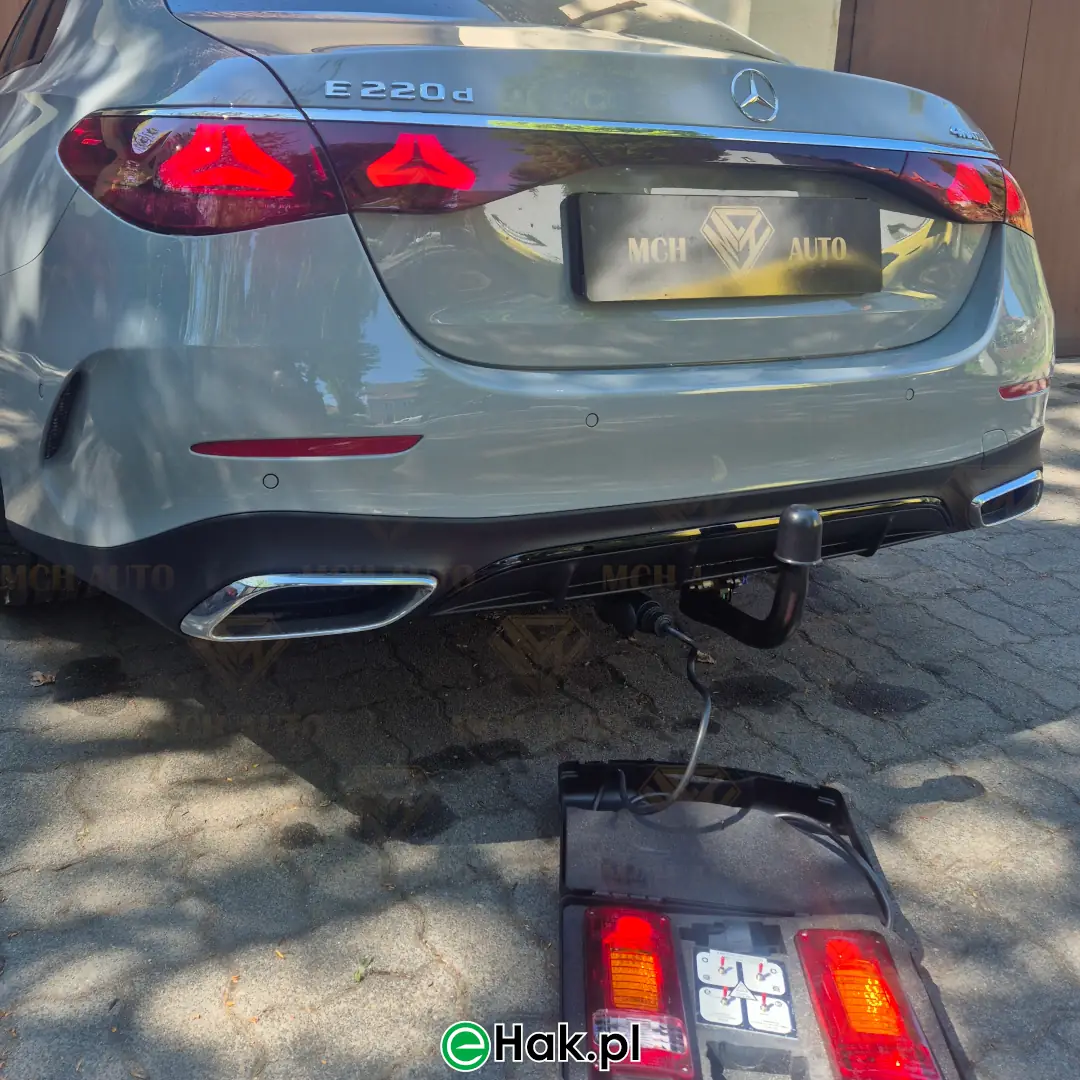 Podnieś funkcjonalność Mercedes E W214/S214, wybierając kompletny zestaw haka holowniczego wraz z profesjonalnym montażem. Nasze zestawy są wyposażone w nowe, solidne, pionowo wypinane haki marki BRINK , które cechują się wysoką wytrzymałością i estetycznym wyglądem. Dodatkowo, oferujemy dedykowane wiązki elektryczne 13 pinowe, zapewniające pełną zgodność z systemami samochodu, w tym obsługę świateł przyczepy i opcjonalne rozłączanie czujników parkowania podczas jazdy z przyczepą.Nasi specjaliści realizują montaż zgodnie z najwyższymi standardami, dbając o bezpieczeństwo i pełną funkcjonalność instalacji. To idealne rozwiązanie dla osób ceniących komfort, niezawodność oraz bezpieczeństwo podczas holowania przyczep czy przewożenia dodatkowych ładunków.